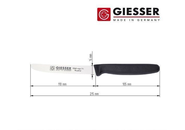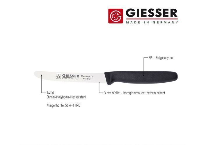 Giesser Messer Tomatenmesser Brötchenmesser Küchenmesser 6er Set 11 cm schwarz