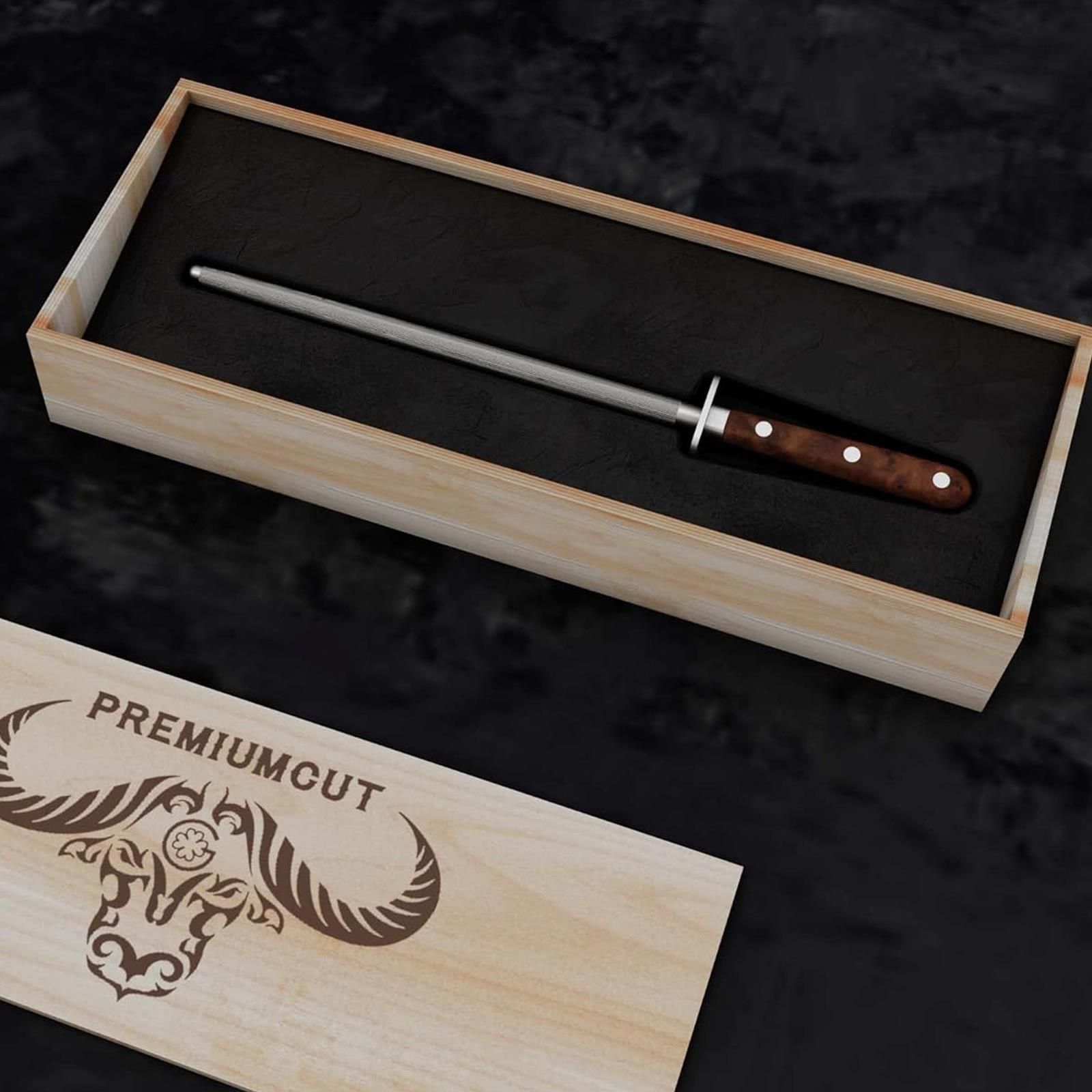 Giesser PremiumCut Wetzstahl 25 cm Steel No 1 runde Klinge mit Standardzug Thuja Holz