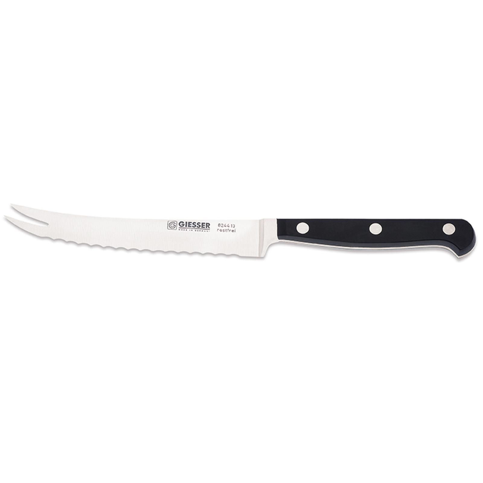 Giesser Tomatenmesser 12 cm schwarz Wellenschliff & geschmiedete Doppelspitzen-Klinge