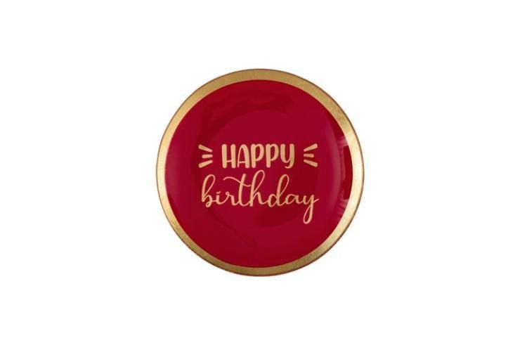 Gift Company Love plates, Glasteller M, Happy Birthday, rund, pink, 1061604013 1 St