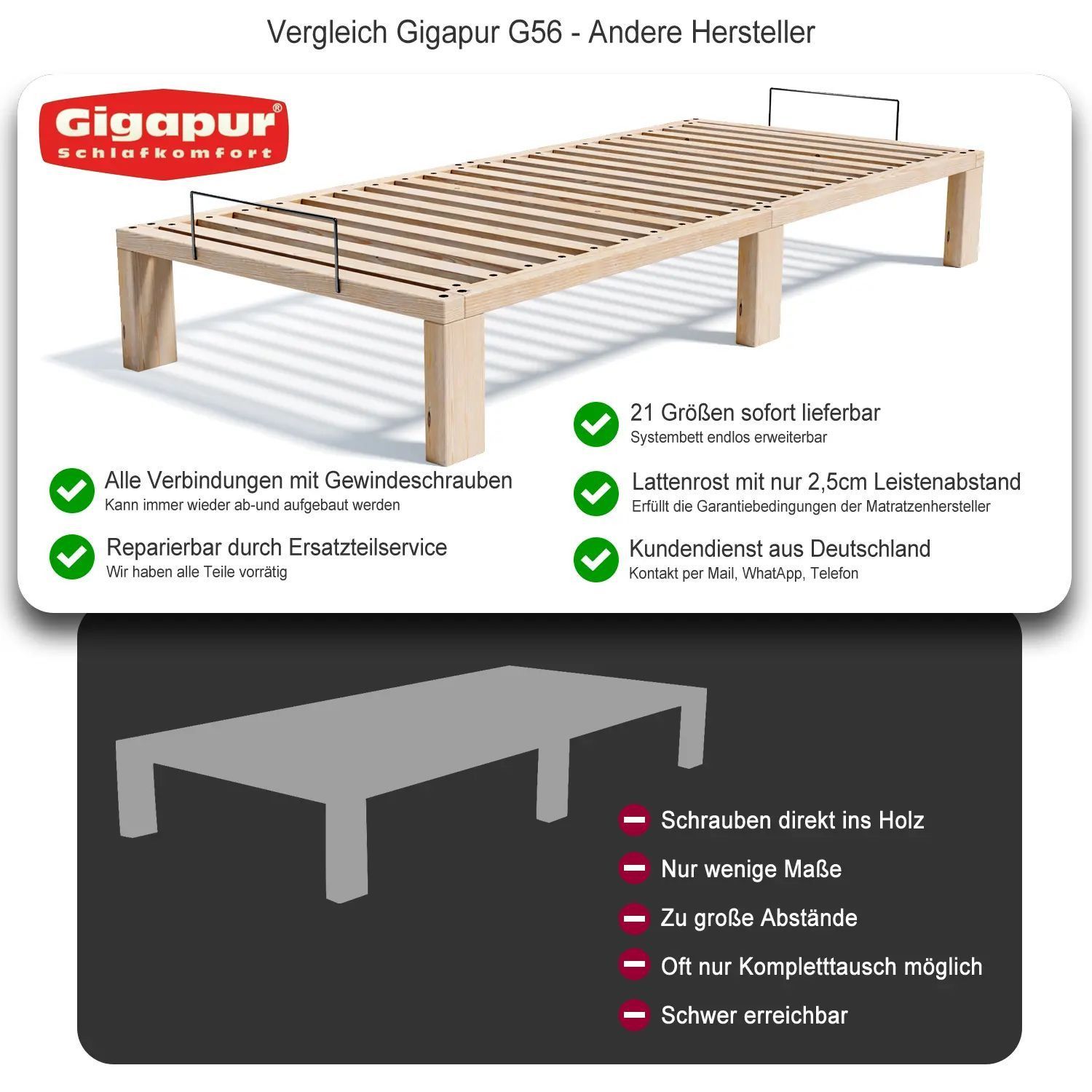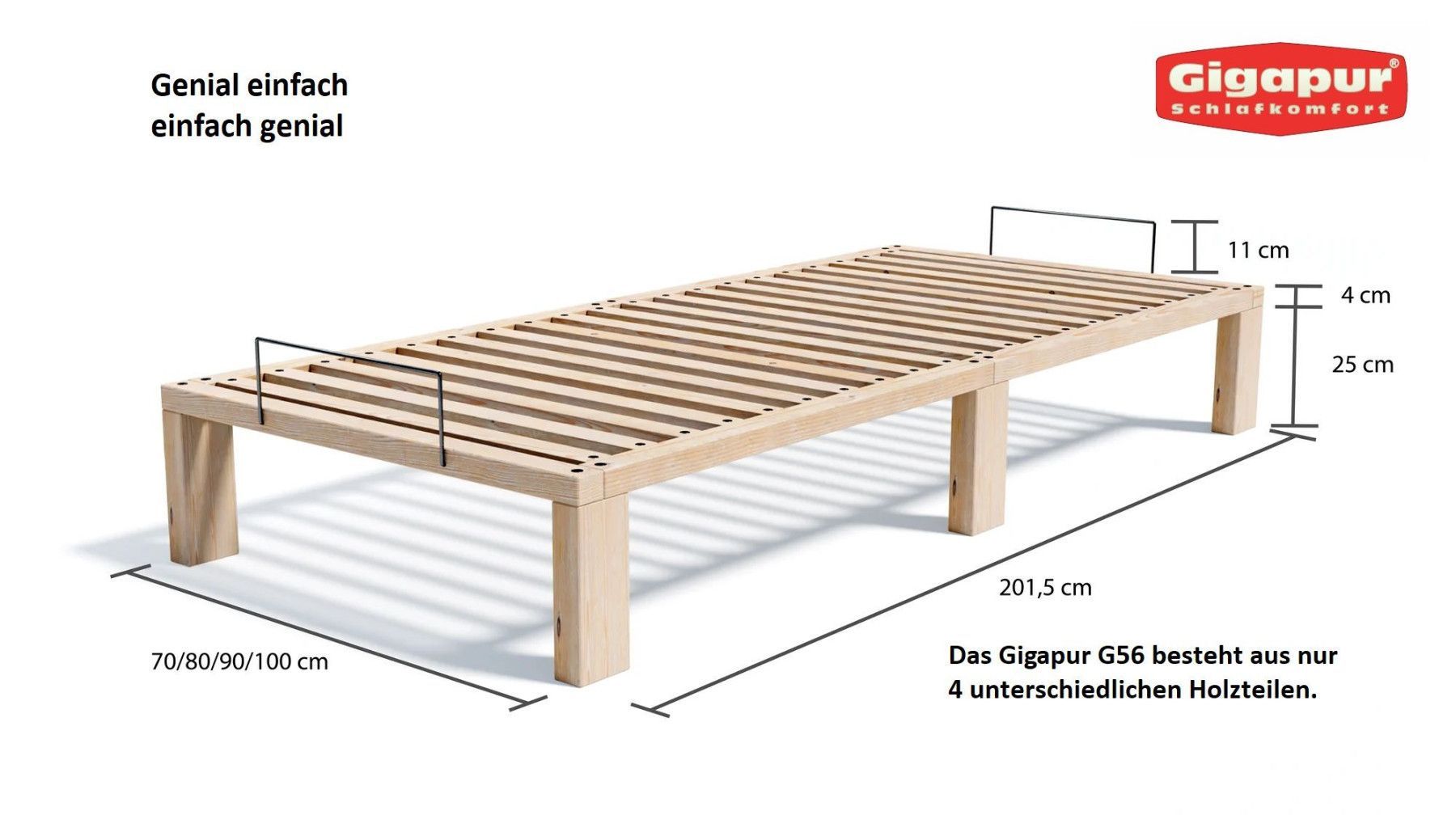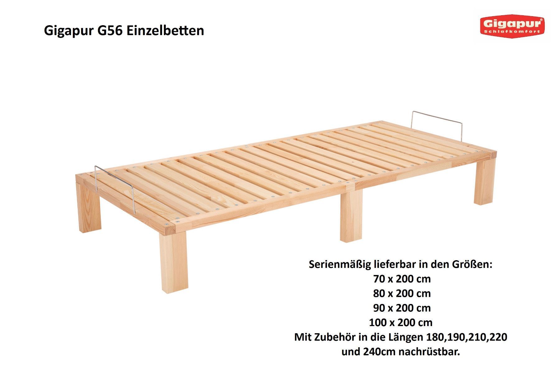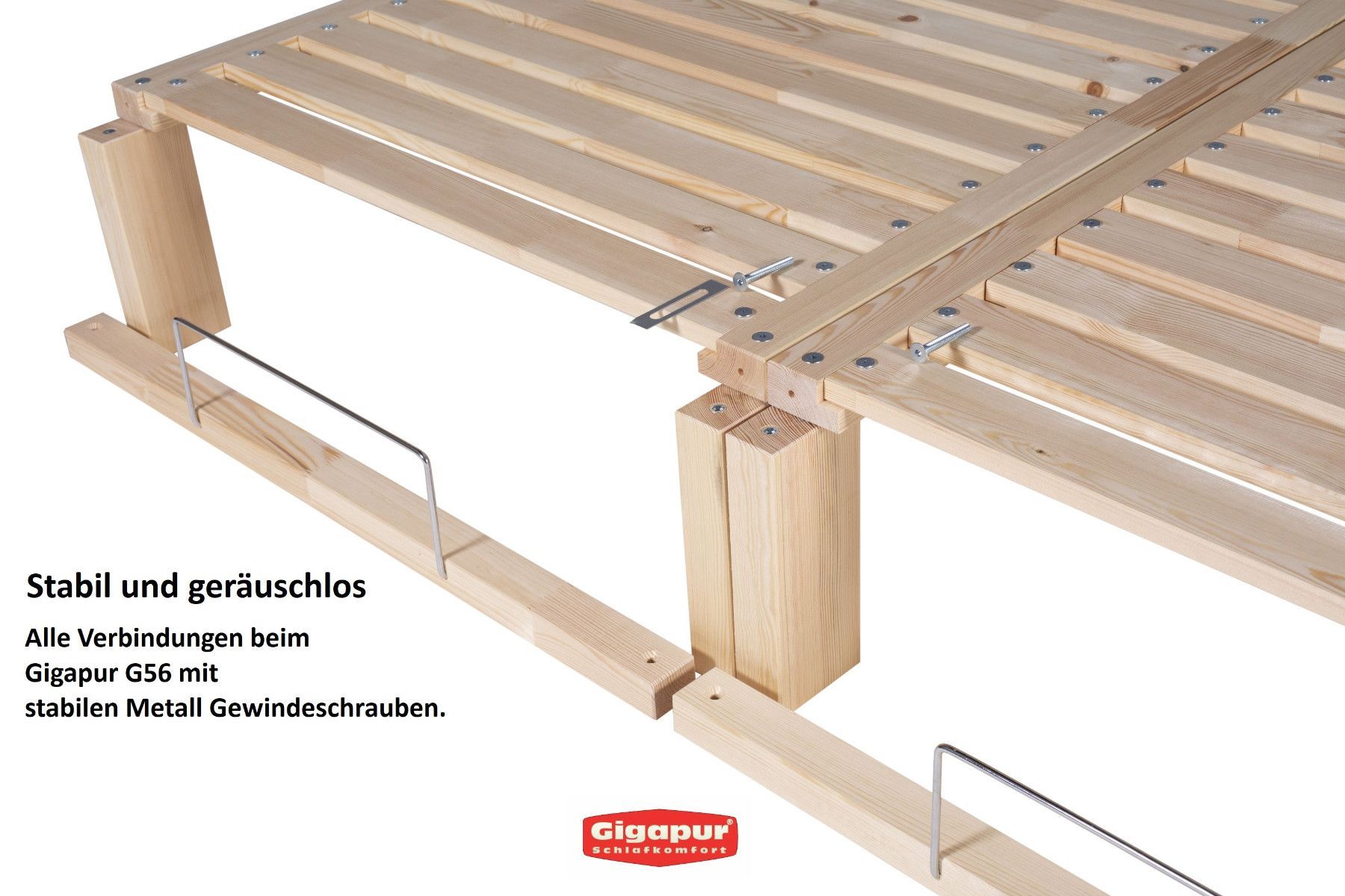 Gigapur Kiefer massiv Holzbett G56, naturbelassen, Liegefläche 70x200cm (11302)