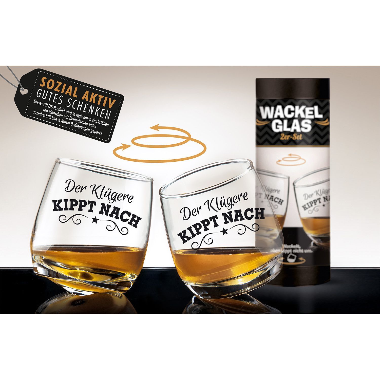 Gilde Gilde 2tlg. Set, Wackelglas, "Klug", Spruch, Glas, klar, VE 3, H. 8.5 cm, D. 7.5