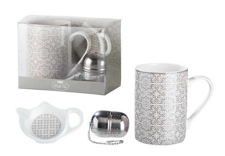 Gilde Gilde 3-tlg. Teeset "Grey Ornaments" im Ornamentdesign Bella Vita aus Knochenporze