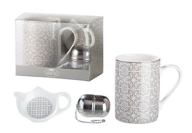• Gilde 3-tlg. Teeset "Grey Ornaments" im Ornamentdesign Bella Vita aus Knochenporze