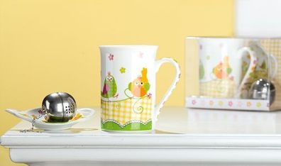 • Gilde Keramik 3tlg. Teeset Vogeltreff 49341