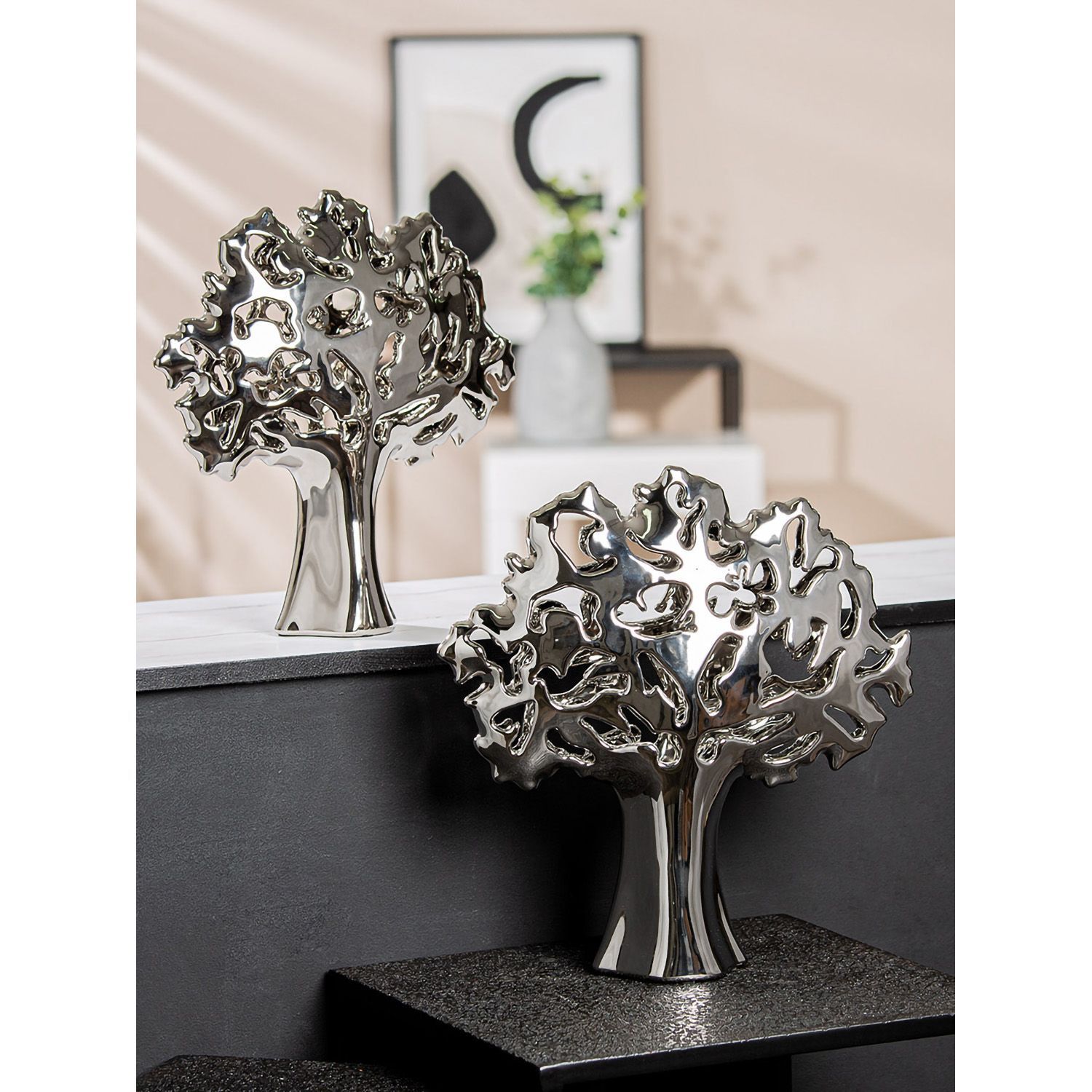 Gilde GILDE Dekoobjekt, Baum, "Alive", Keramik, silberfarben, , L. 10 cm, B. 33,5 cm,