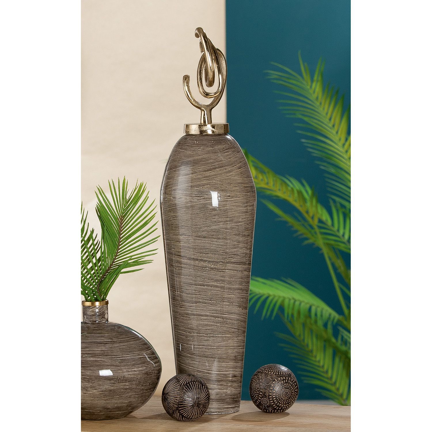 • Gilde 2tlg. Set, Dekoobjekt, "Bricco", Holz, Metall, braun, dunkelgrün, VE 3, 2er