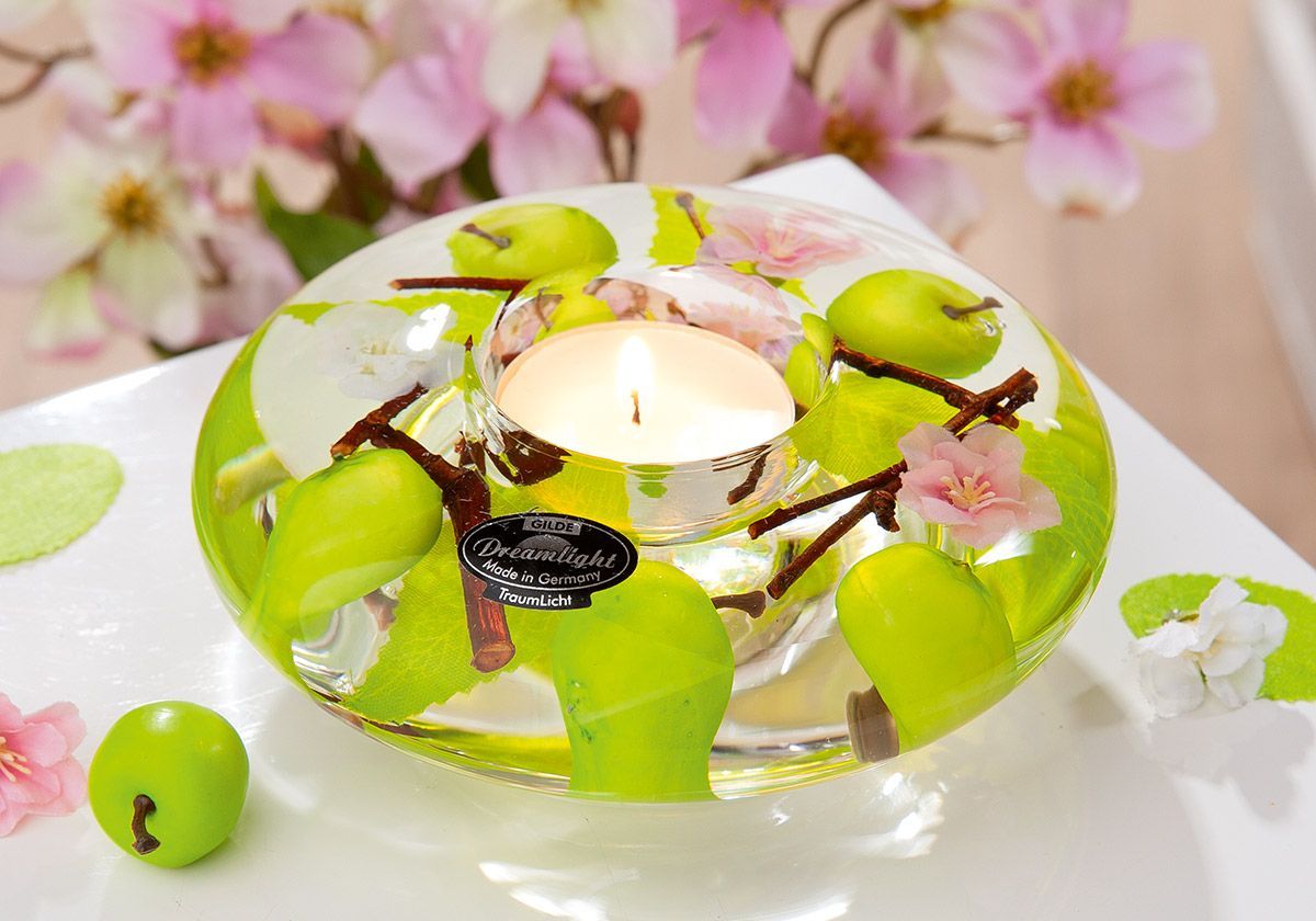Gilde Gilde Dreamlight, Teelichtleuchter, Ufo Medium, "Fresh Apple ", Glas, grün, VE 6,