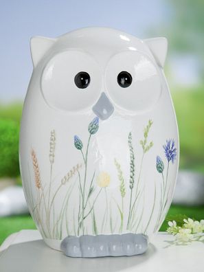 • Gilde Figur, Eule, "Wildblume", Blumenmuster, Keramik, weiß, VE 2, L. 12 cm, B