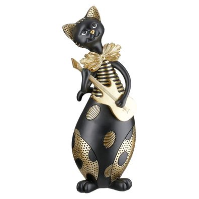 • Gilde Figur, Katze, "Kapella", Musikermotiv, Kunstharz, schwarz, , L. 9 cm, B. 14