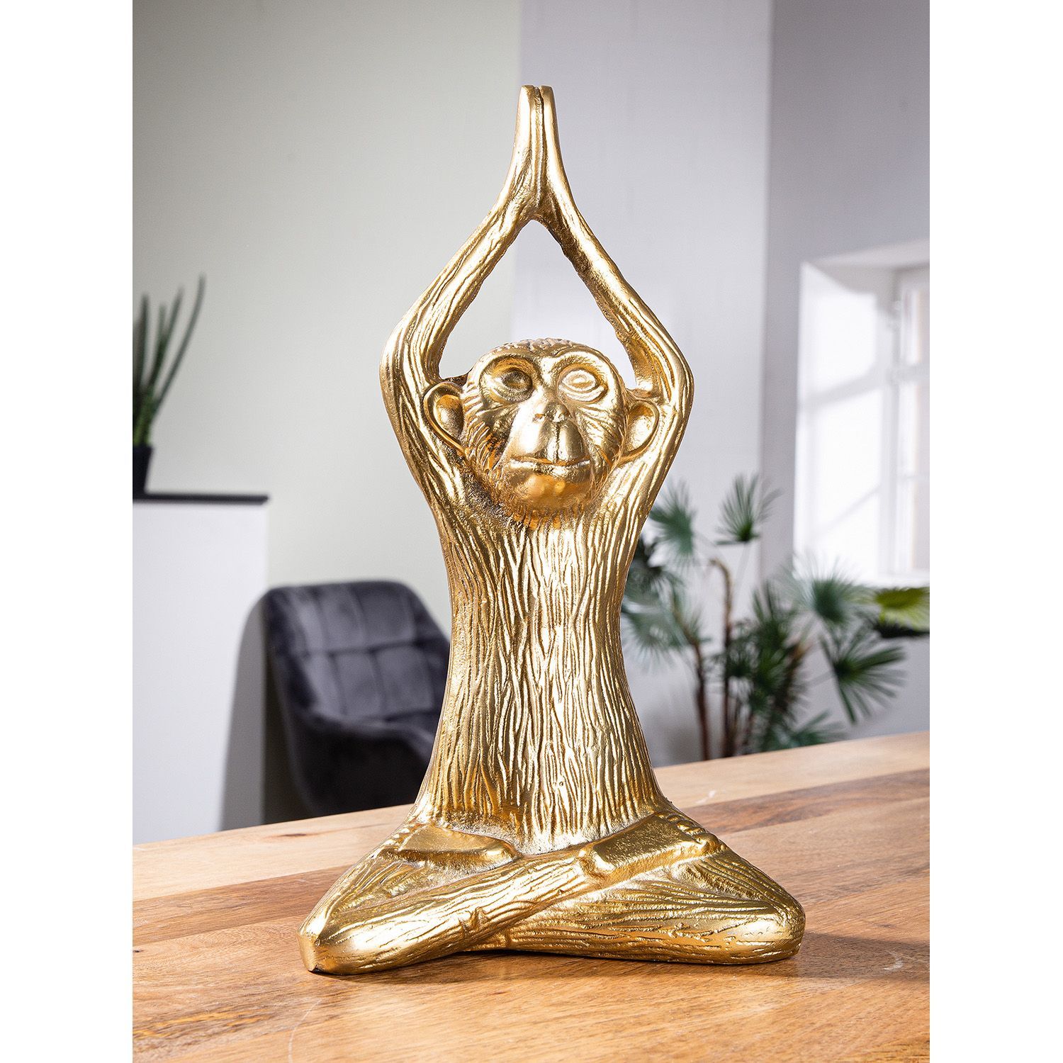 Gilde Gilde Figur, Affe, "Monkey", Aluminium, goldfarben, VE 1, L. 9 cm, B. 16 cm, H