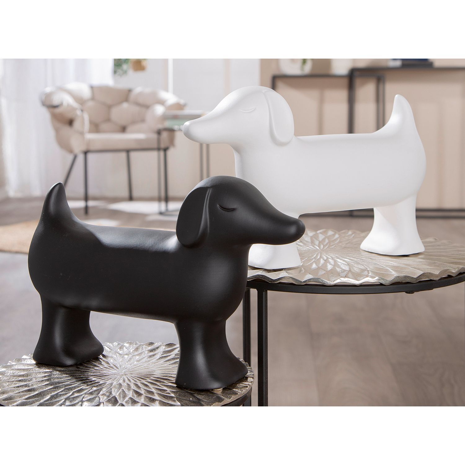 Gilde Gilde Figur, Dackel, "Flocki", Keramik, schwarz, weiß, L. 11 cm, B. 35 cm, H. 23