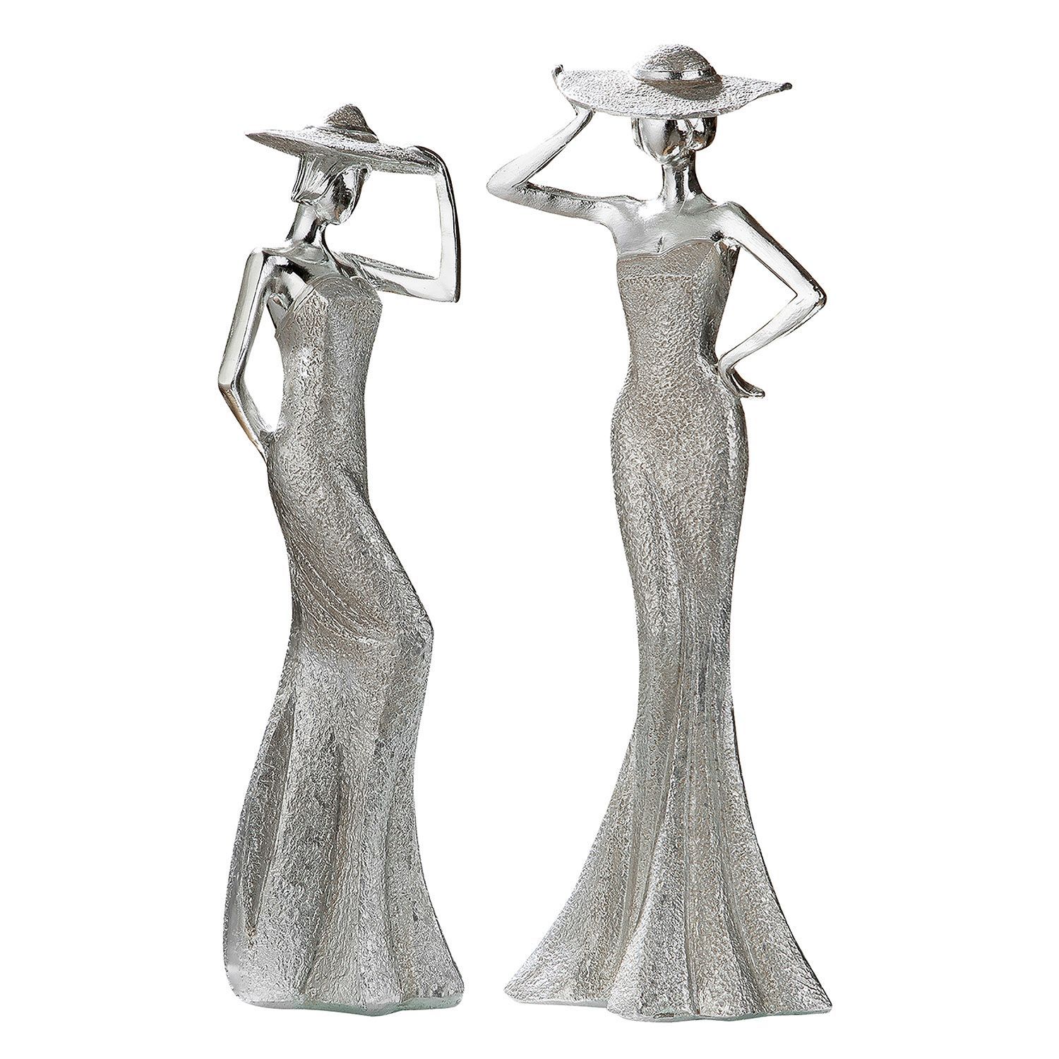 Gilde Gilde Figur, Lady, "Diva - Hände am Hut", Kunstharz, silberfarben, L. 10 cm, B