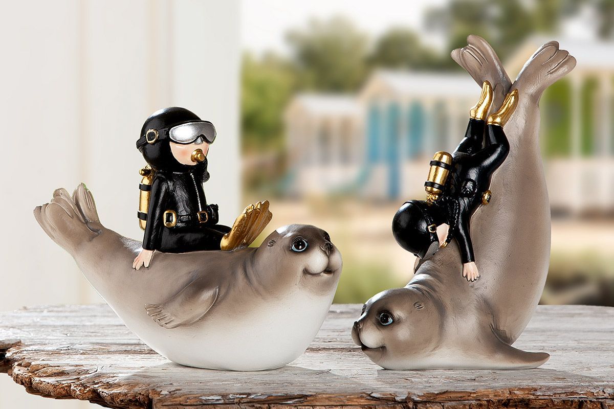 Gilde Gilde Figur, Robbe, "Scuba", Tauchermotiv, Kunstharz, grau, VE 4, 2fach sortiert,