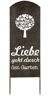 • Gilde Gartenstecker mit Weisheit und Herzbaum "Liebe geht durch den Garten" dunkel