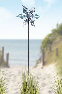 • Gilde Gartenstecker Windrad "Schiffe" hellblau/weiß/grau H: 150 cm T: 7 cm Ø 36