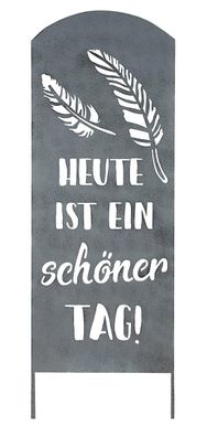 • Gilde Gartenstecker mit Weisheit und Federn "Heute ist ein schöner Tag" antik