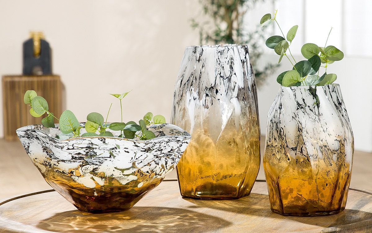 Gilde Gilde Glasart, Schale, "Arte", Glas, creme, orange, VE 1, H. 14 cm, D. 30 cm Höhe: