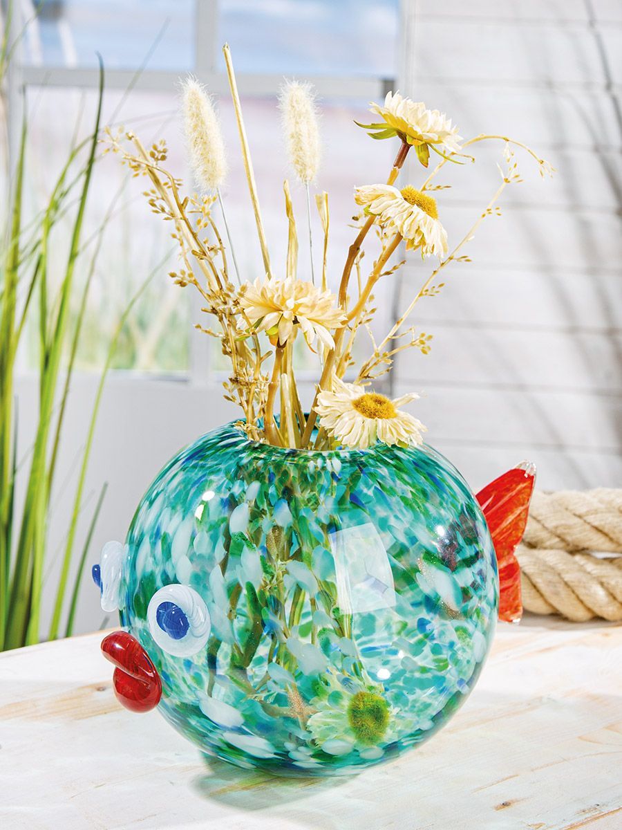 Gilde Gilde Glass Art, Vase, klein, Kugel, "Wendy", Glas, blau, VE 2, L. 17 cm, B. 23
