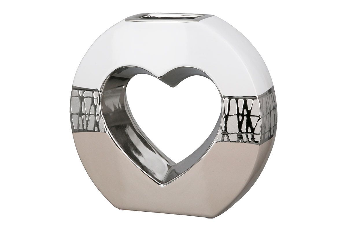 Gilde Gilde Herz-Lochvase "Pico" beige/weiß/silberfarben H: 21 cm B: 22 cm T: 7 cm 32403