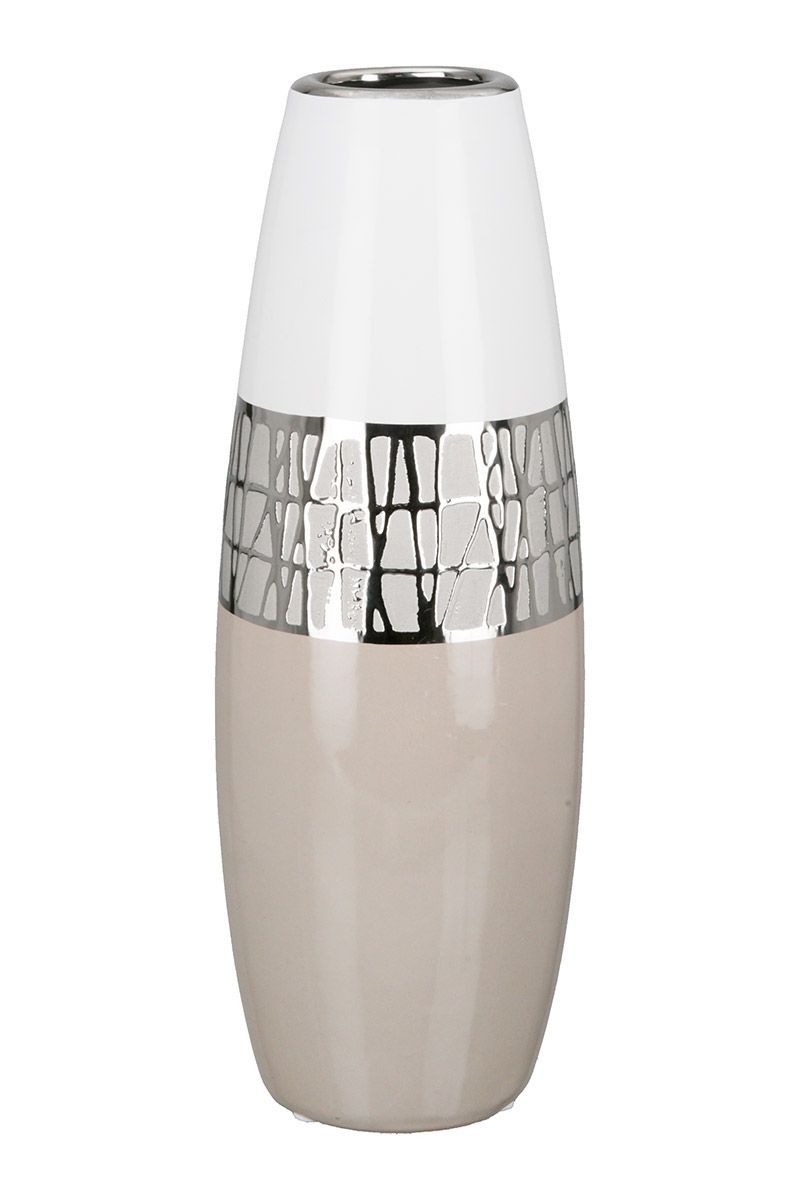 Gilde Gilde Kegelvase "Pico" beige/weiß/silberfarben H: 29 cm B: 12.50 cm T: 12.50cm 32404