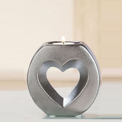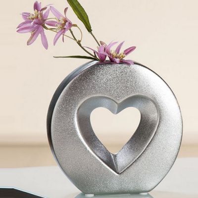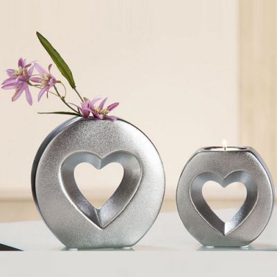 Gilde Gilde Keramik Vase oder Teelichthalter Leuchter Fiacca matt silber Herz rund NEU