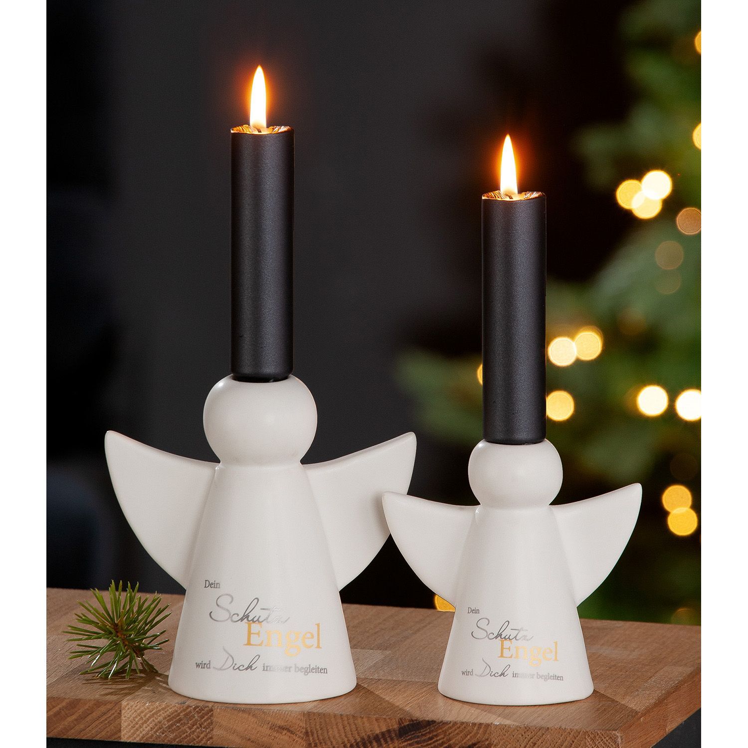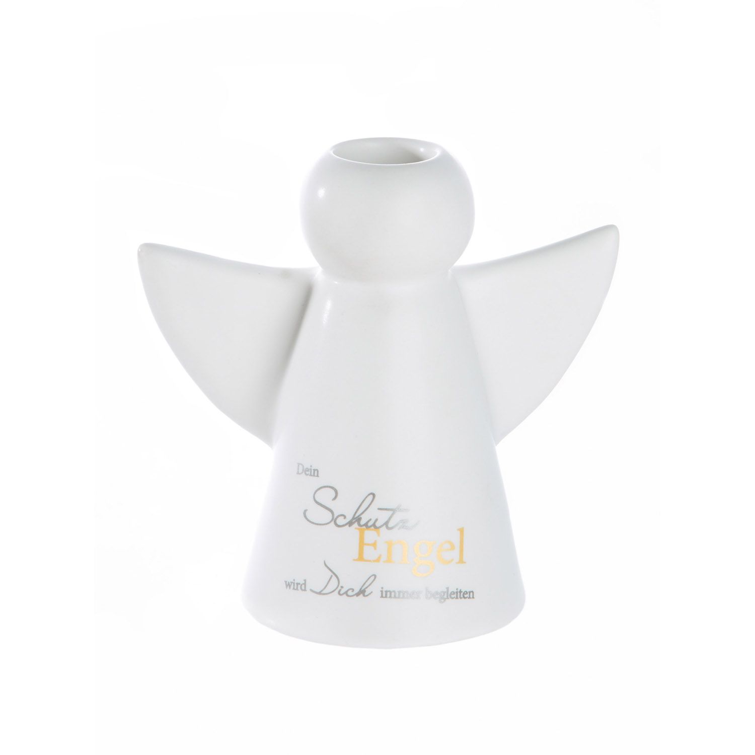 Gilde Gilde Kerzenleuchter, Engel, "Schutzengel", Spruch, Porzellan, weiß, VE 3, L. 8.5