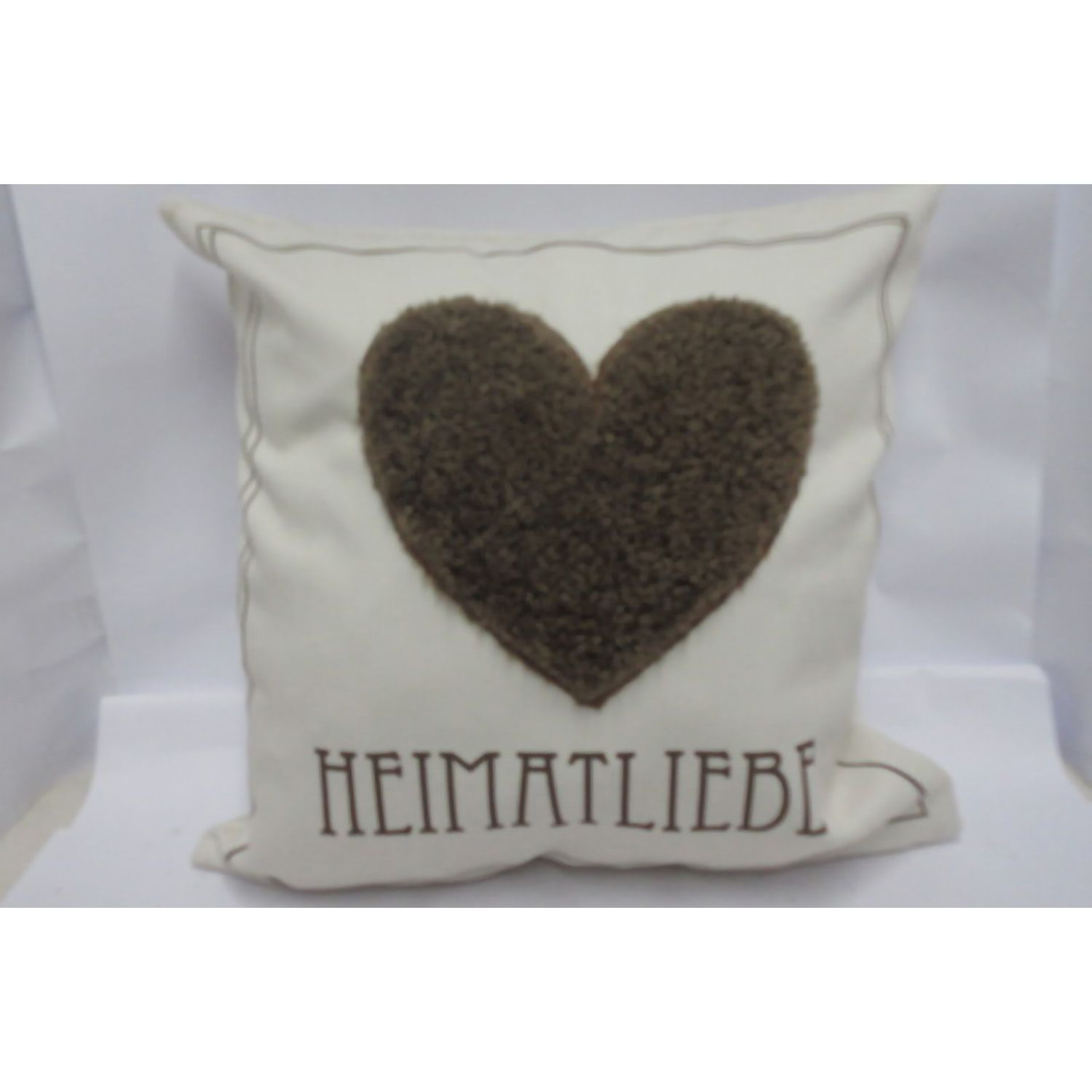 Gilde Gilde Kissen, quadratisch, "Heimatliebe", Herzmotiv, Schriftzug, Polyester, braun,