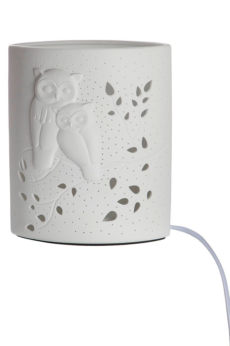 • Gilde Lampe Ellipse "Eulenpaar" Porzellan weiß 32277