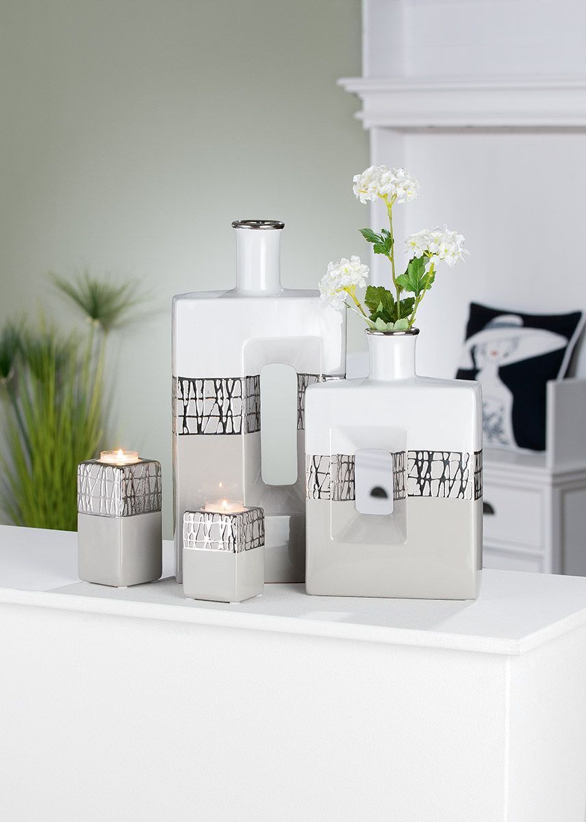 Gilde Gilde Lochvase "Cabrera" taupe/weiß/silberfarben H: 37.50 cm B: 17.50 cm T: 6.50cm