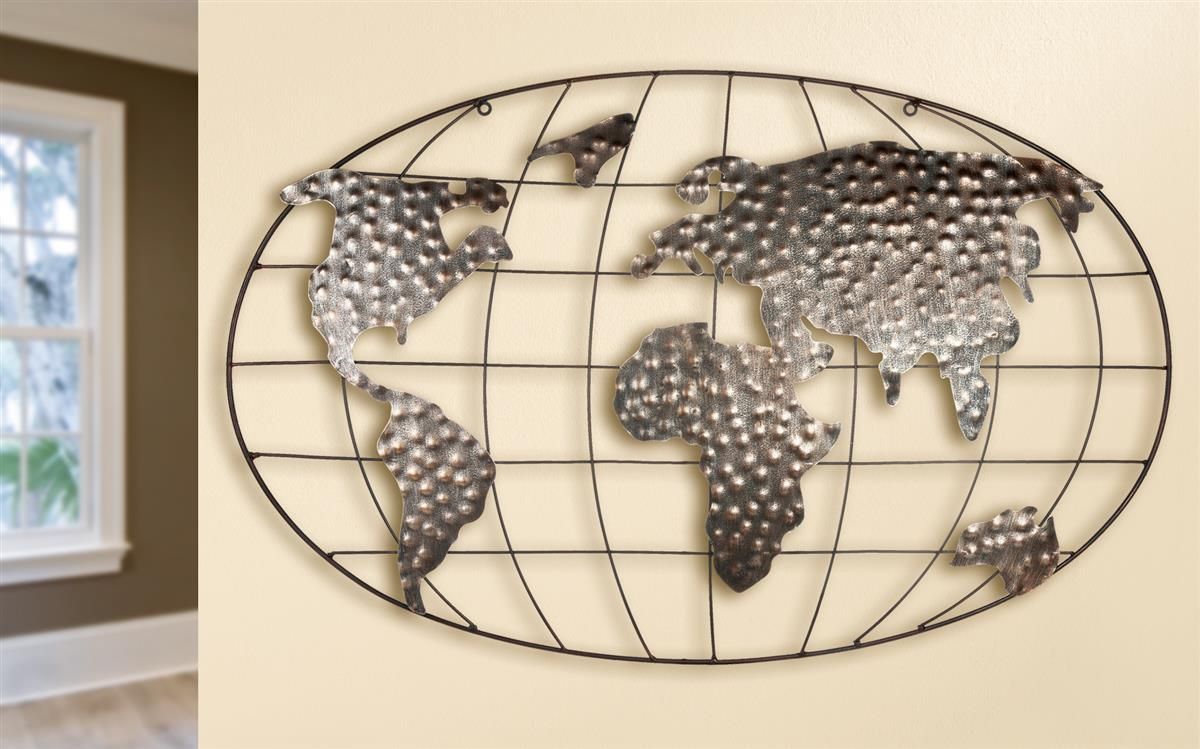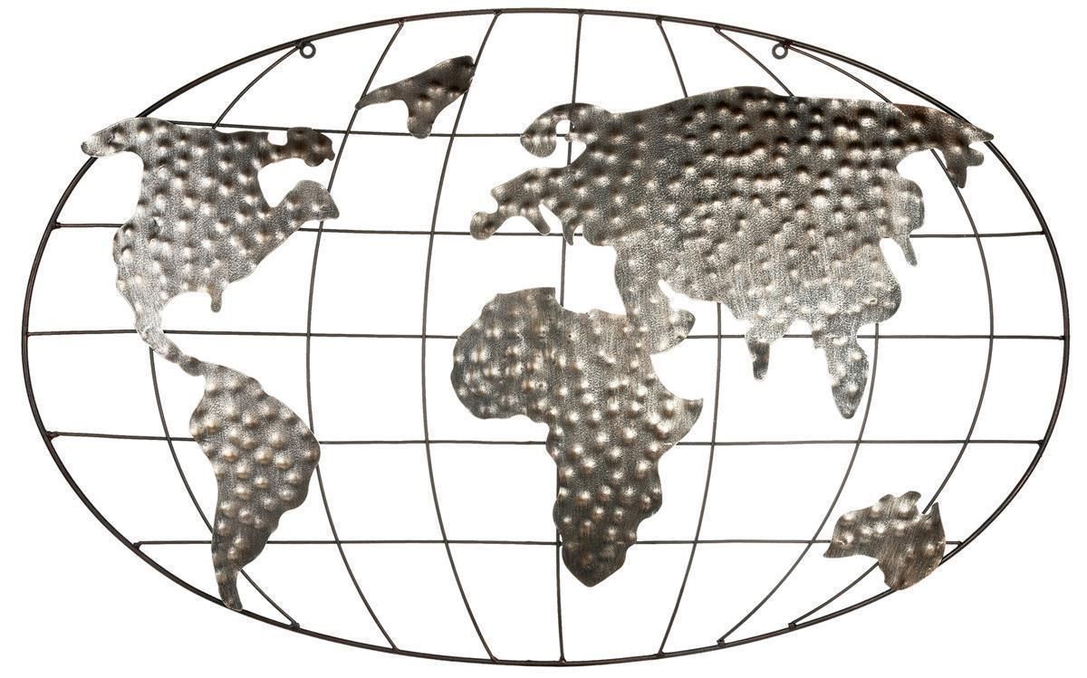 Gilde GILDE Metall Wandrelief Weltkugel VE 2 (B x H x L) 80 x 50 x 0 cm braun