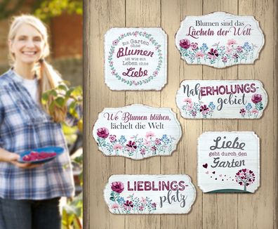 • Gilde Schild, rechteckig, "Gartenzeit", Spruch, gepunktet, Metall, braun, B. 35