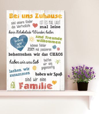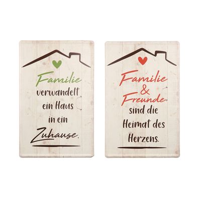 • Gilde Schild, rechteckig, "Familie", Spruch, Metall, creme, B. 19 cm, H. 30 cm