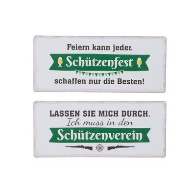• Gilde Schild, rechteckig, "Schützenfest", Spruch, Metall, weiß, VE 6, 2 Stück wie