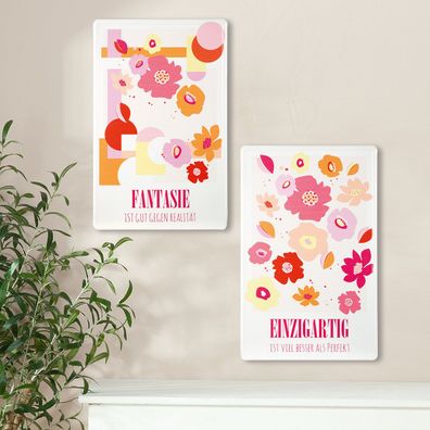 • Wandrelief Wandbild Schriftzug mit Blume "Hier wohnt das Glück" - Gilde