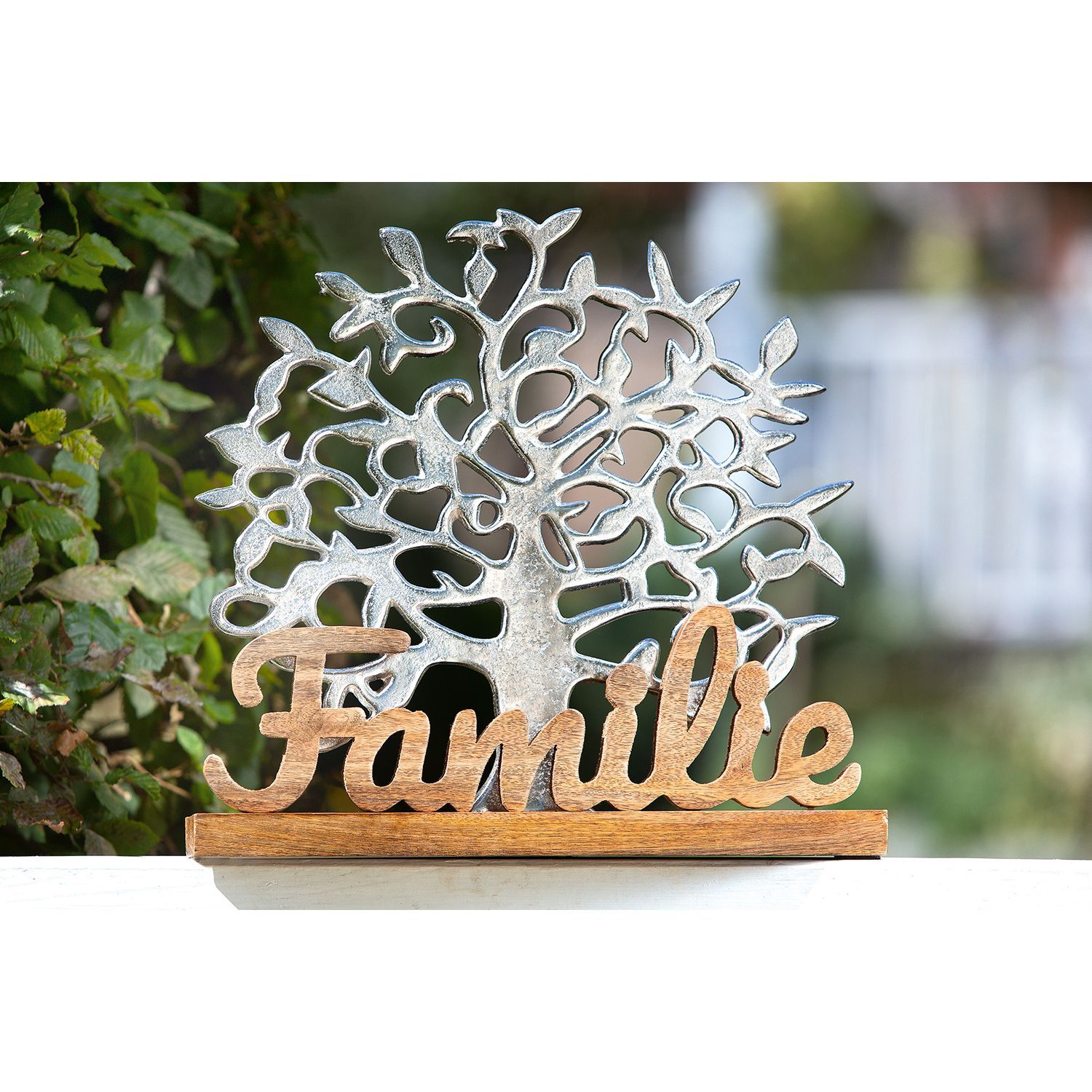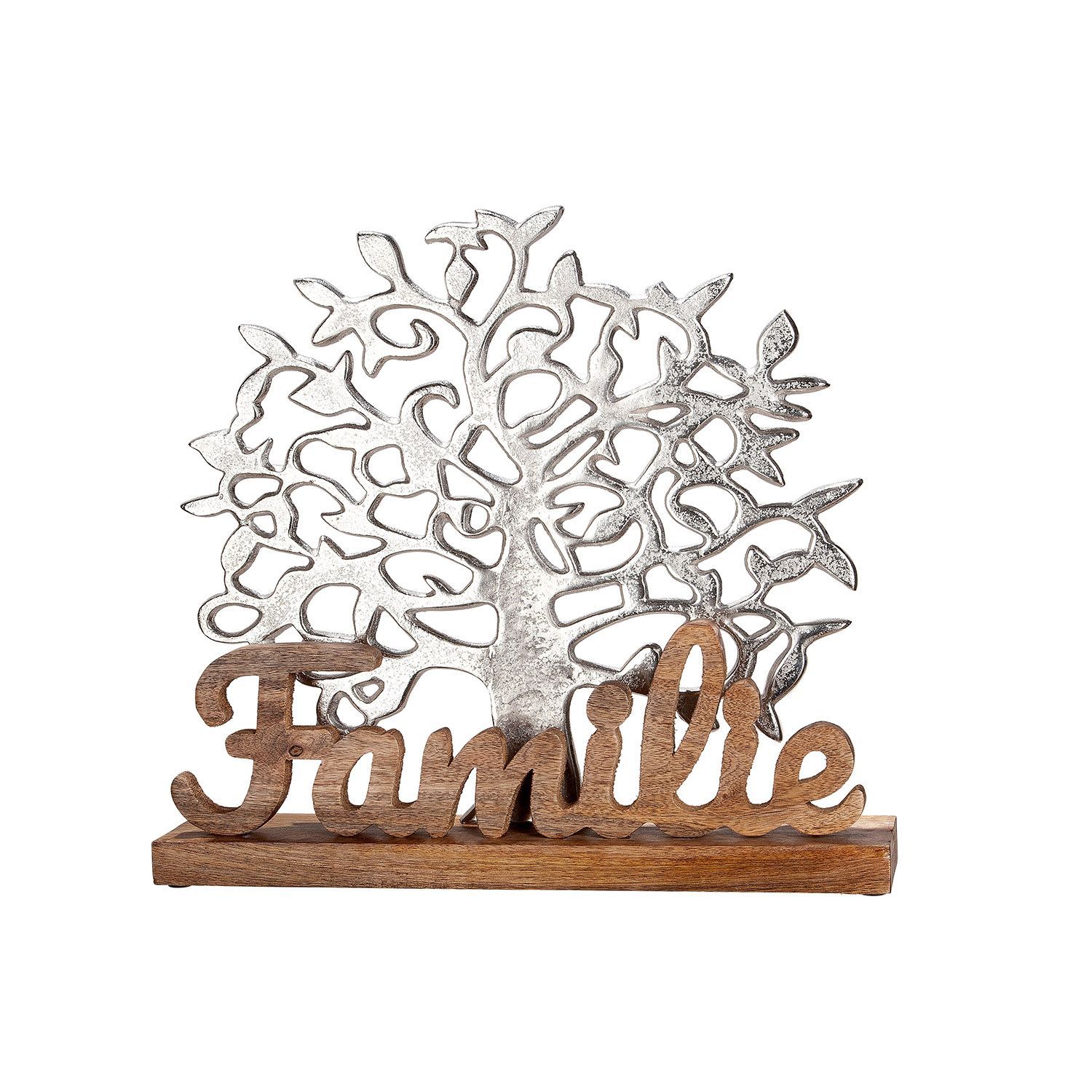 Gilde Gilde Schriftzug, Lebensbaum, "Familie", Baummotiv, Aluminium, Mangoholz, naturfar