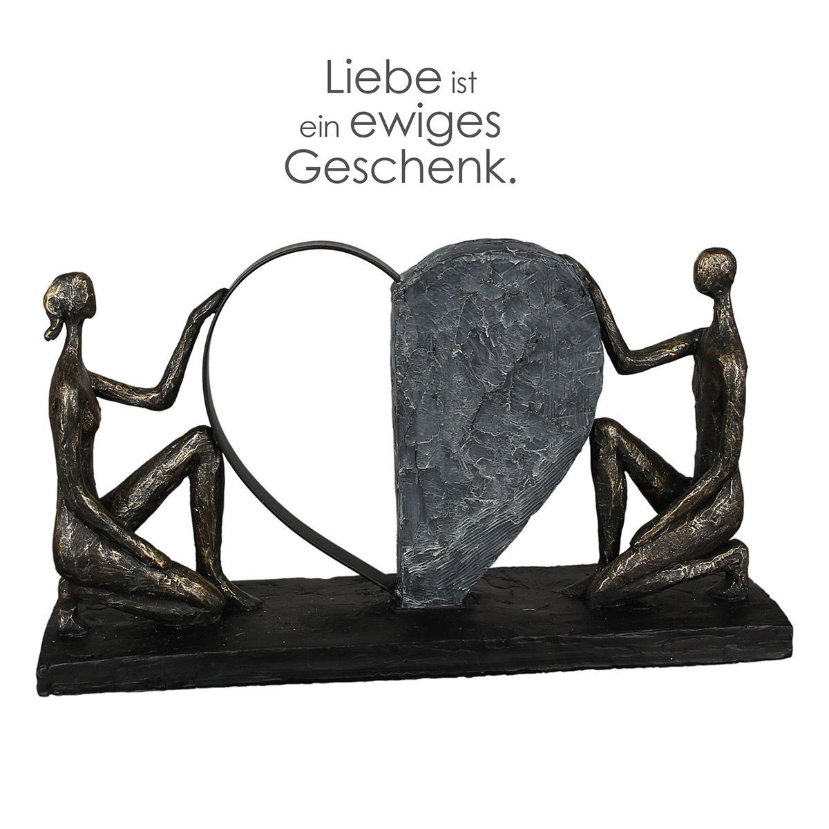 Gilde Gilde Skulptur "Affair of the Heart" bronzefarbene Figuren mit Herz, Basis in