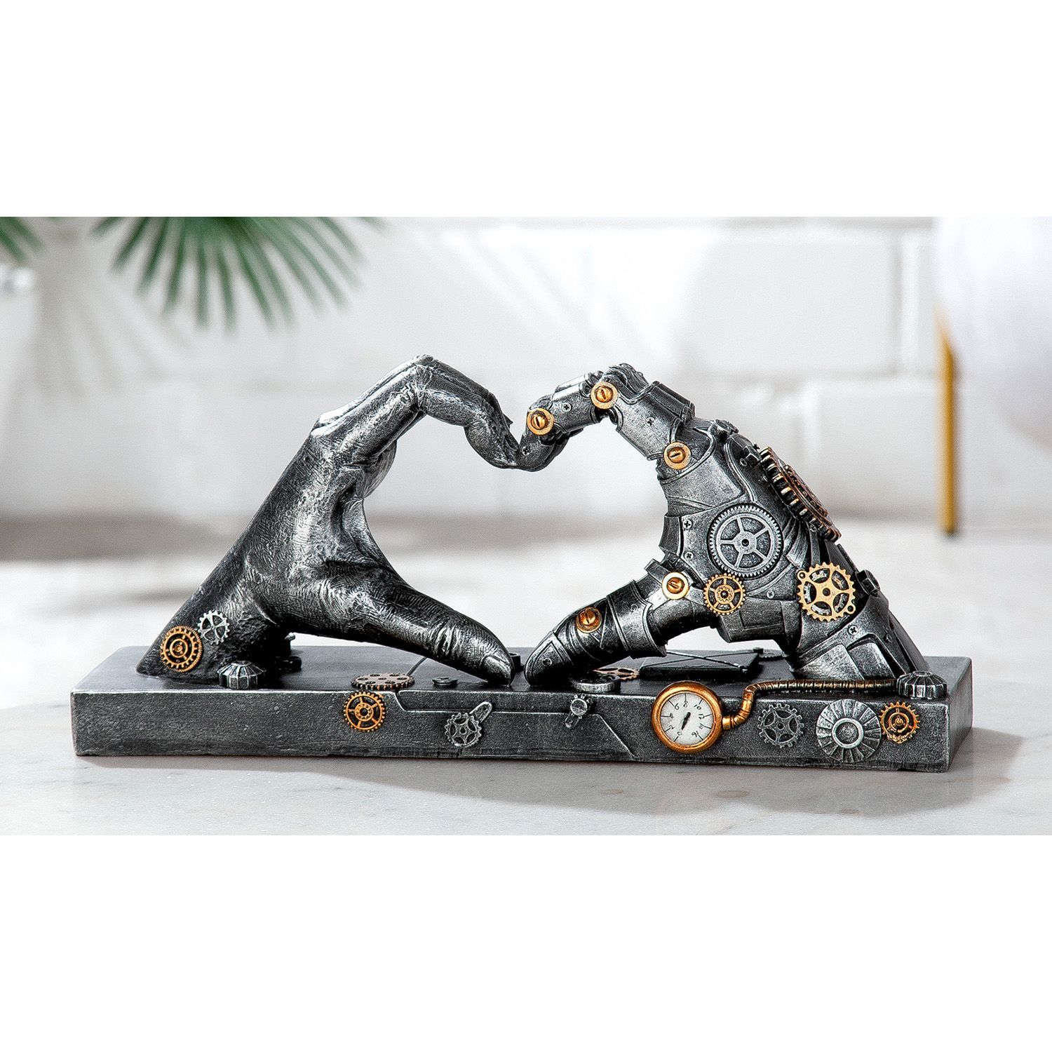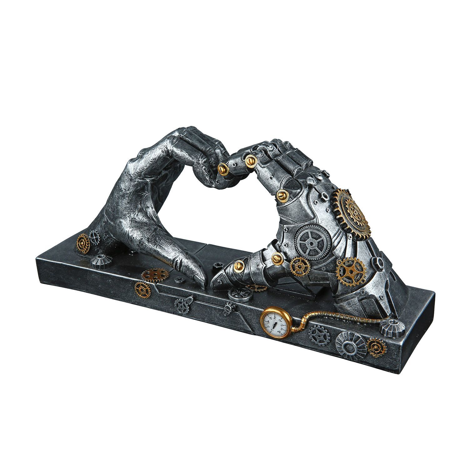 Gilde Gilde Skulptur, Herz, "Steampunk Hand", Händemotiv, Kunstharz, silberfarben, VE