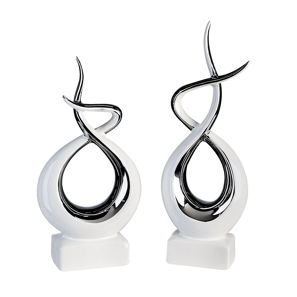 Gilde Gilde Skulptur, "Infinity", Keramik, weiß, silberfarben, B. 12 cm, H. 30 cm 16020