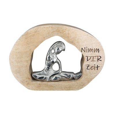 • Gilde Skulptur, oval, "Zeit", Spruch, Yoga, Aluminium, Holz, naturfarben, silberfa
