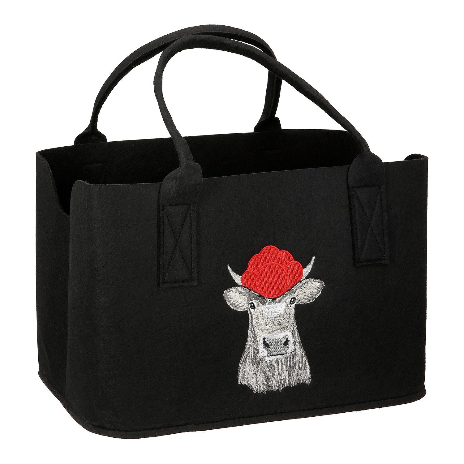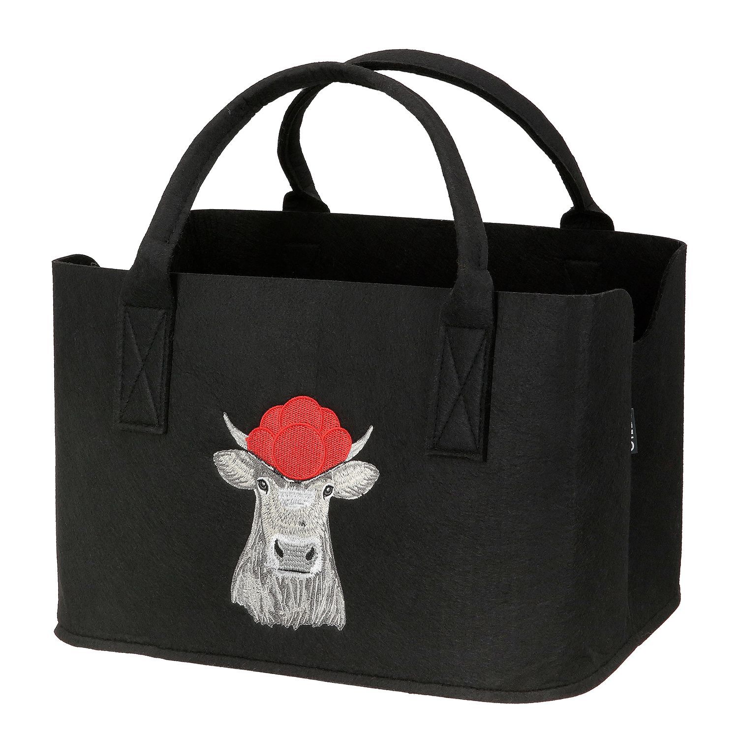 Gilde Gilde Tasche, rechteckig, "Bollenhutkuh", Bollenhutmotiv, Kuhmotiv, Filz, schwarz,