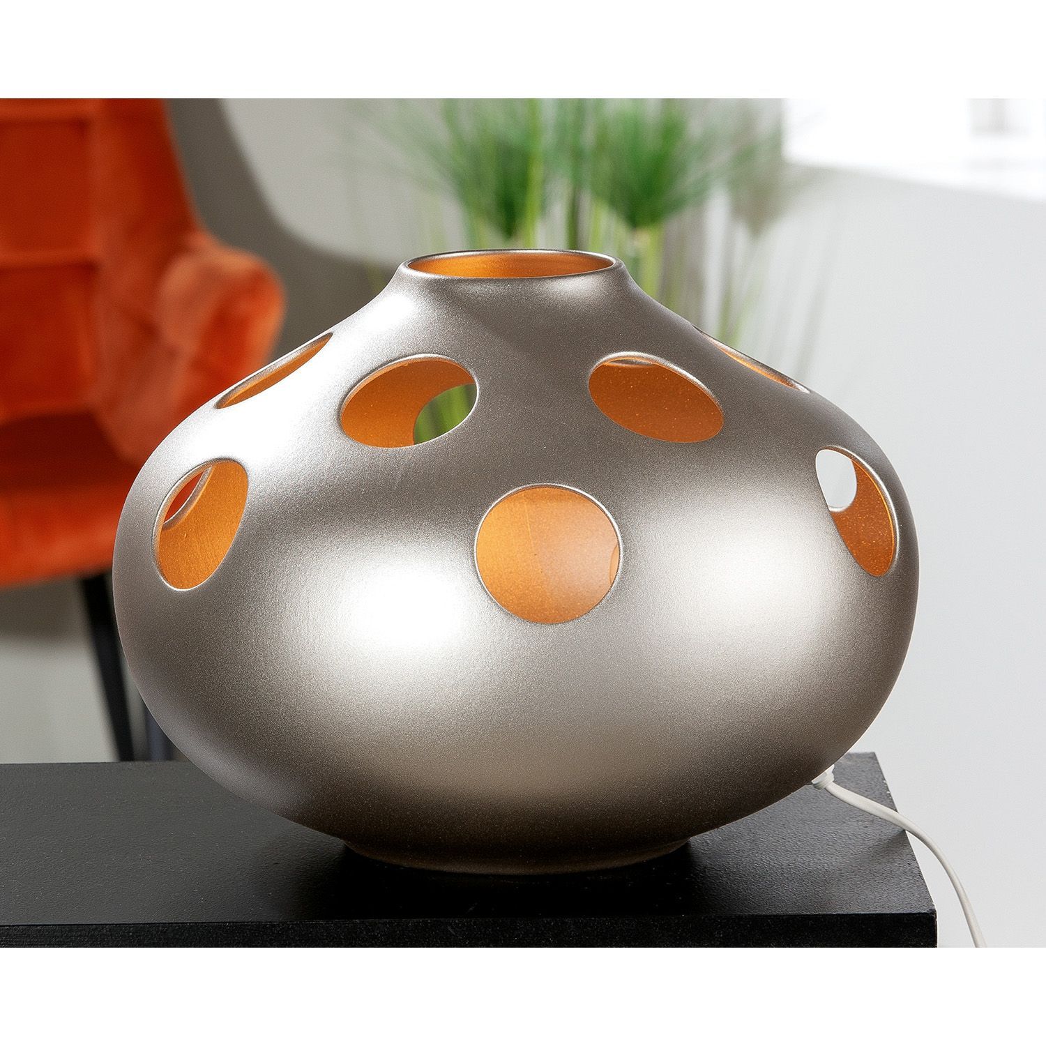 Gilde Gilde Tischleuchte, bauchig, "Nazare", Keramik, champagnerfarben, VE 1, H. 23 cm,