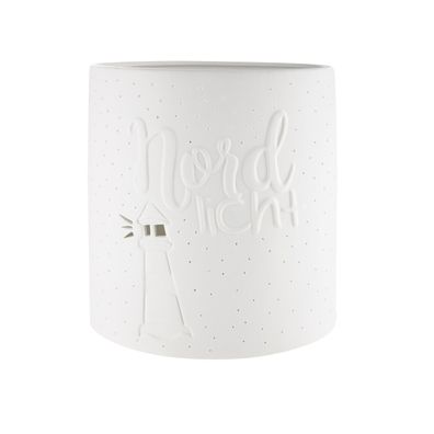 • Gilde Tischleuchte, "Nordlicht", Leuchtturmmotiv, Schriftzug, Porzellan, weiß, VE