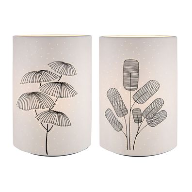 • Gilde Tischleuchte, "Ginkgo", Ginkgomotiv, Porzellan, weiß, VE 1, L. 9 cm, B. 17