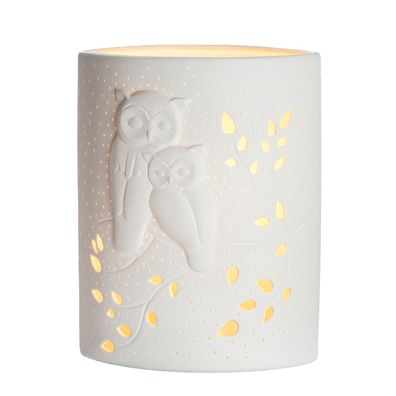 • Gilde Tischleuchte, Eulenmotiv, Porzellan, weiß, VE 1, L. 10 cm, B. 18 cm, H. 28