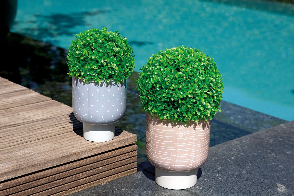 • Gilde Übertopf, rund, "Hexagon", Keramik, silberfarben, VE 2, H. 19 cm, D. 24 cm