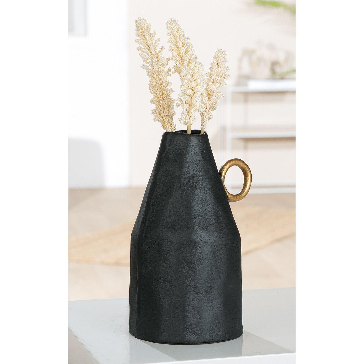 Gilde Gilde Vase, "Dora", Aluminium, schwarz, VE 2, L. 13 cm, B. 13 cm, H. 24 cm 69810