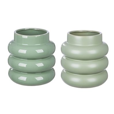 • Gilde Vase, "Rim", Keramik, grün, H. 24 cm, D. 23 cm 34315 4063387343159 2 Stück