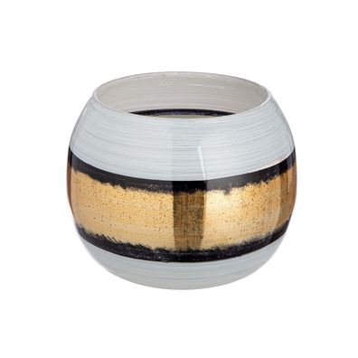 • Gilde Vase, bauchig, "Brokat", Glas, goldfarben, weiß, VE 1, H. 21 cm, D. 17 cm