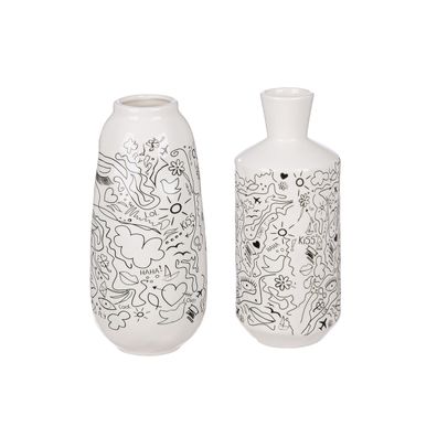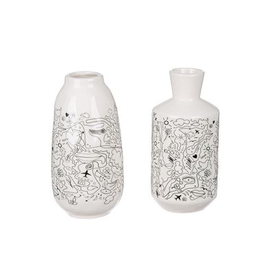 • Gilde Vase, zylindrisch, "One Line Flower", Blumendesign, Keramik, weiß, VE 2, L